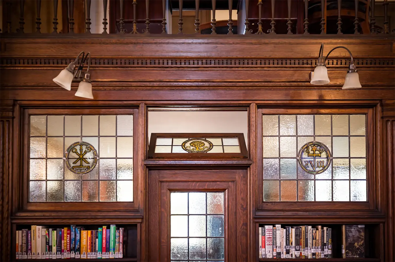 With its fine oak paneling imported from the Caucasus, as well as a substantial table and chairs (the originals now removed), the Board Room was originally intended to serve as a conference room for the Library Board - the group of women who were so dedicated to the library and worked tirelessly for its causes.