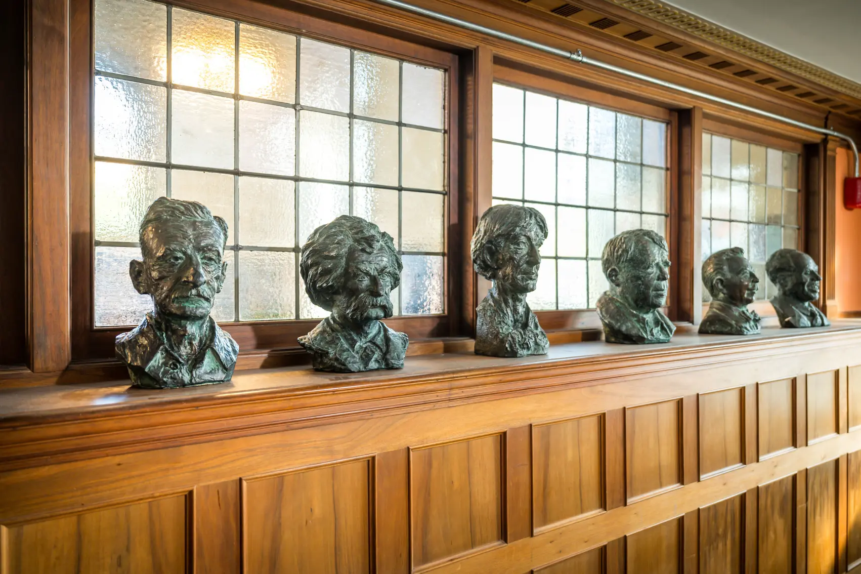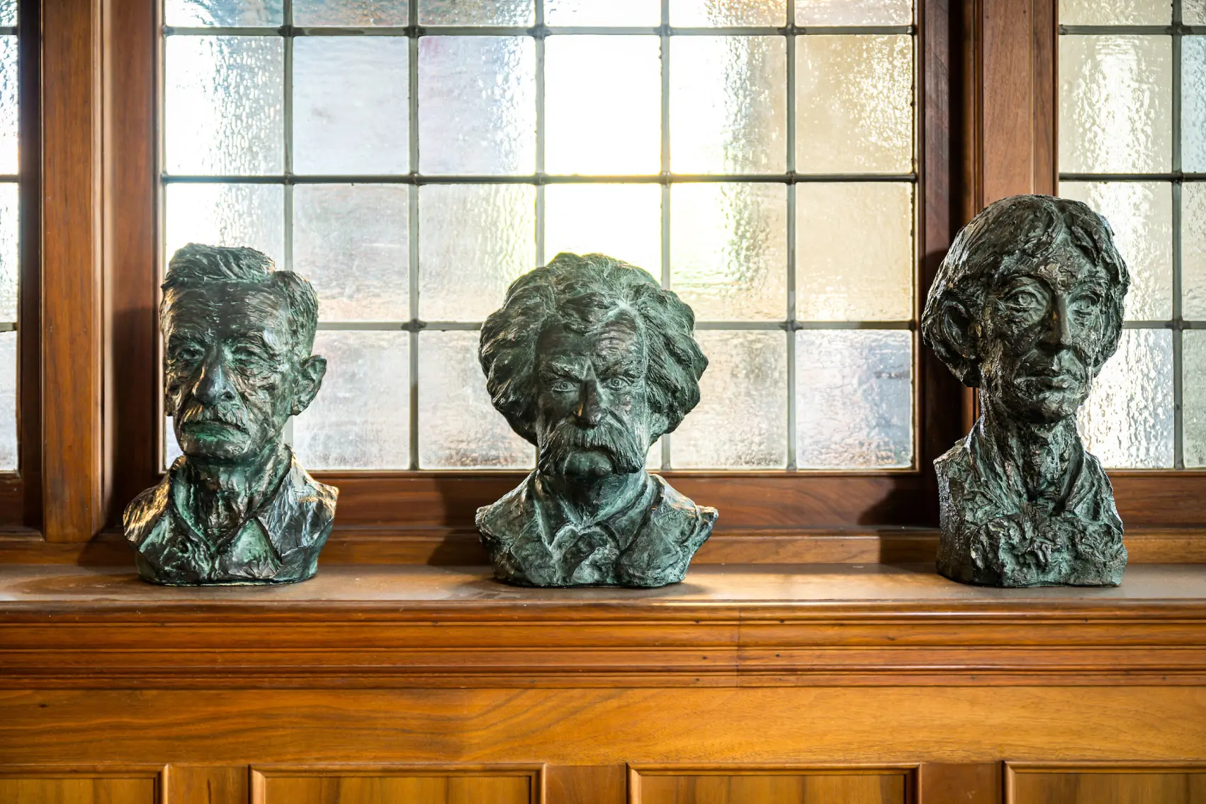The Board Room also acknowledges several great literary figures in the form of sculpted busts: Ralph Ellison, Robert Frost, Eugene O’Neill, Mark Twain, H.G. Wells and Virginia Woolf.