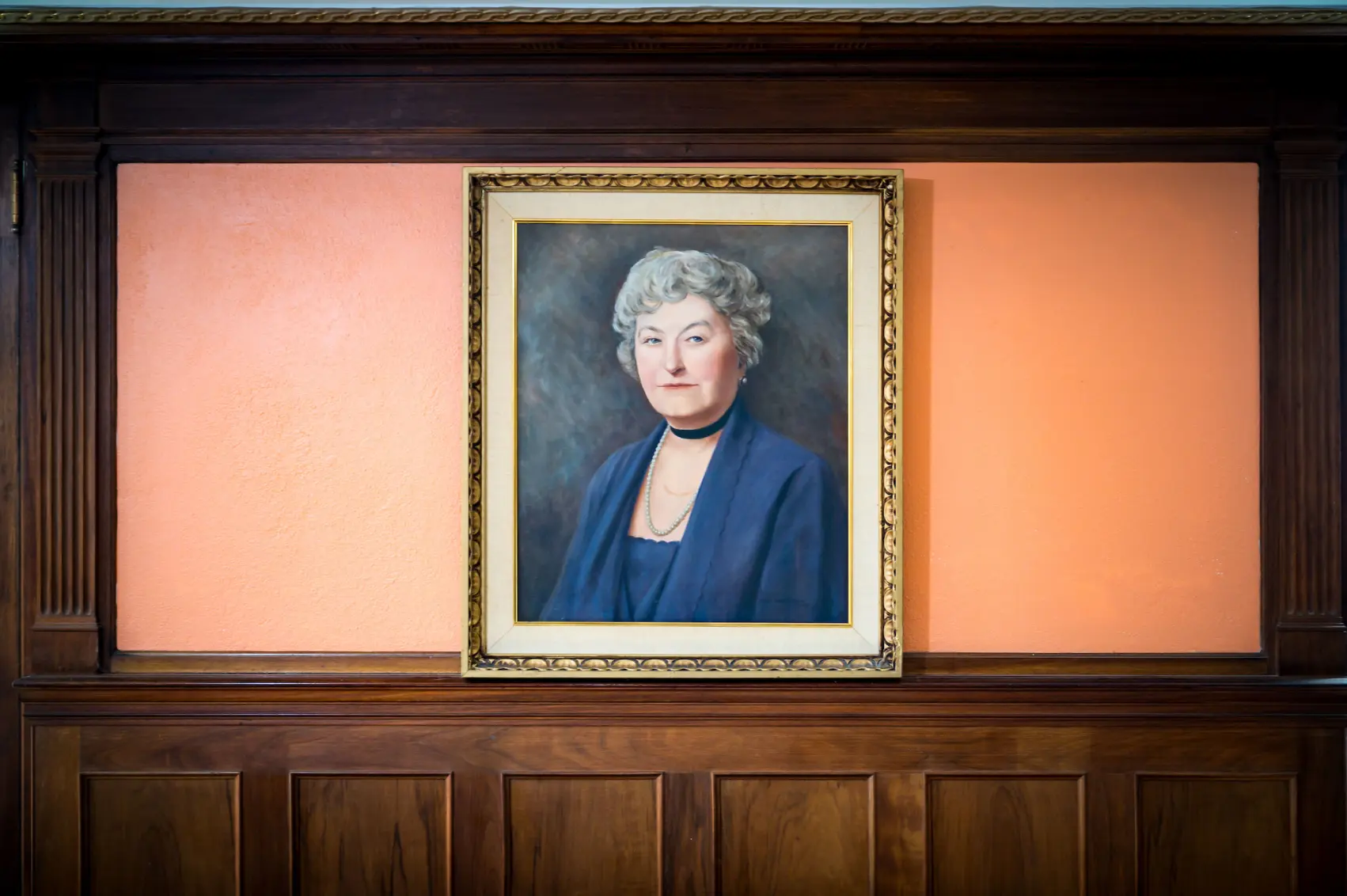 On the exterior wall hangs a framed painting of Emma (Mrs Frederick) Shaw, one of the founding members of the original library in Elmwood, and long-time President of the Elmwood Library Association. Mrs Shaw was one of many pioneering women all over the country, particularly those married to successful businessmen before women were able to vote, who organized themselves in the service of social causes, ranging from sanitation and temperance to education and votes for women. In Providence alone, for example, a committee of women was responsible in 1877 for establishing the Rhode Island School of Design; within a year of the time the Elmwood Public Library Association came together, Gertrude Johnson and Mary Wales opened a school to expand business opportunities primarily for women.