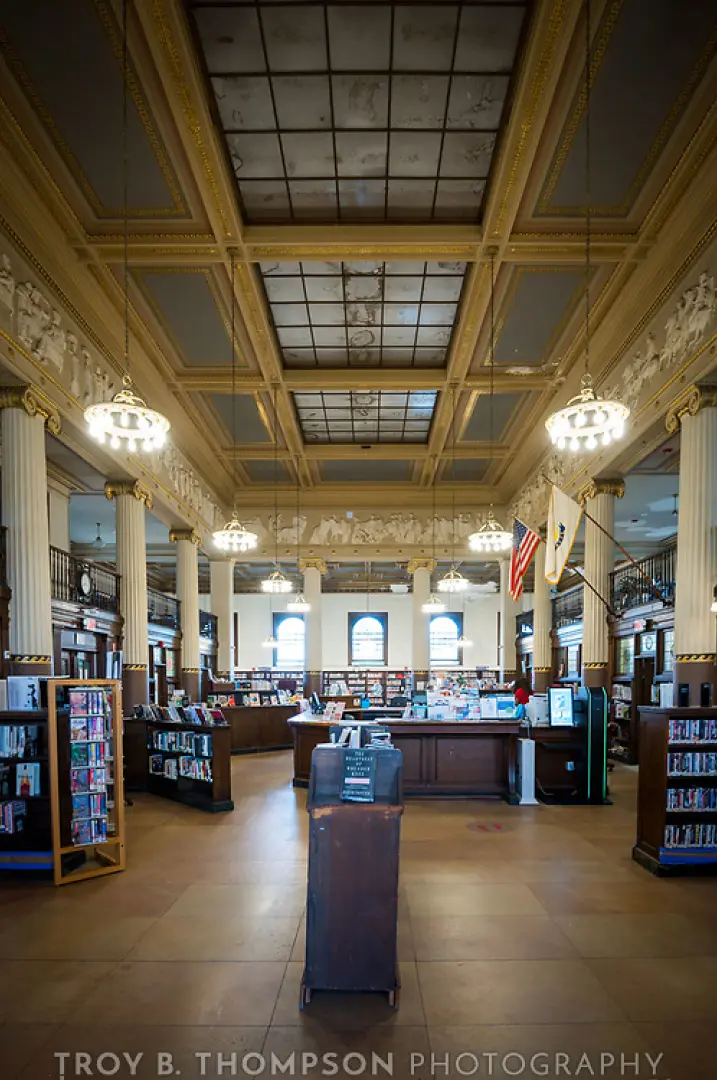 The tour of Knight Memorial Library highlights the beauty and cultural significance of Greek and Roman foundations for learning taken for granted in the early twentieth century America. The tour highlights icons of the Ancients, the medieval image chosen by Knight for himself, and then the busts of mainly British and American writers. The library's iconography of a hundred years ago is still historically significant in America, but just as the library now sits in the diverse crossroads of the Elmwood/West End/South Providence neighborhoods, so contemporary stories, learning, and meaning found in today's library reflect inevitably the waves of influence of more than a century of immigration in Providence.