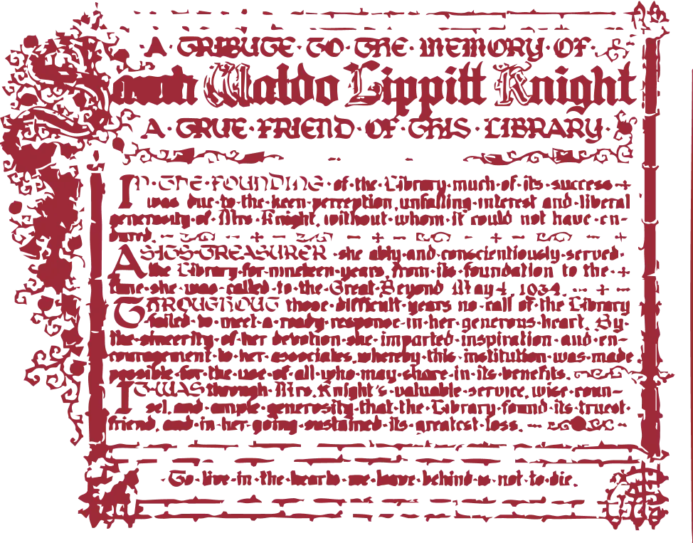 Mrs. Edna Frazier was a South Providence resident and active community leader. She served with several school and civic organizations and was also a friend of the Knight Memorial Library. She had a lifelong passion for education. After her death in 1968, it was determined that this historic collection serve as a memorial for her service to the community and to continue her dream of education.
