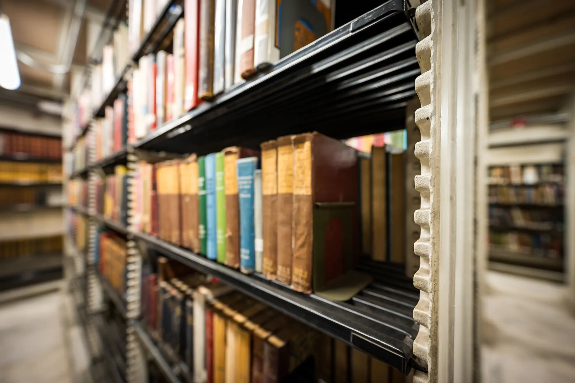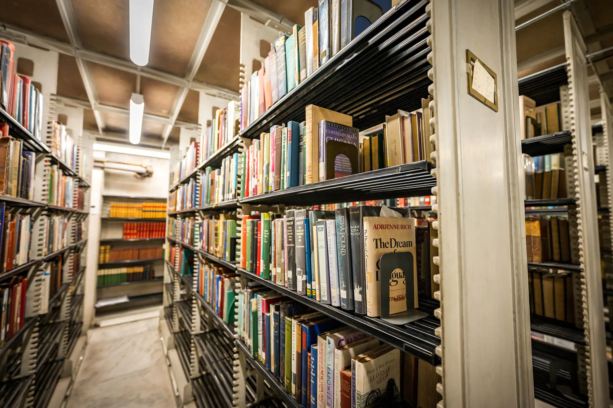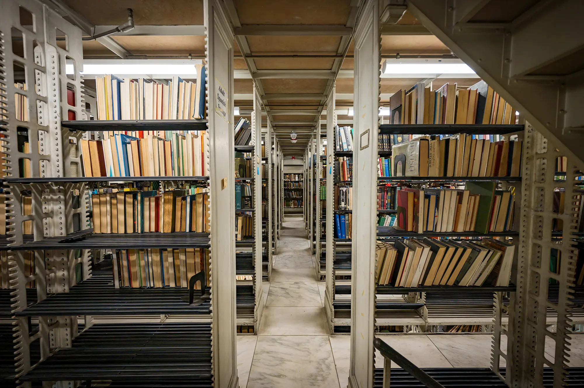 A leader in early twentieth-century innovative library design, architect Edward L. Tilton incorporated the open floor plan that had become popular at the turn of the century and shifted book storage to below the main floor. Three levels of stacks, constructed of cast iron, stored library materials and supported the main floor, reserving the main floor for reading, research and deliveries.